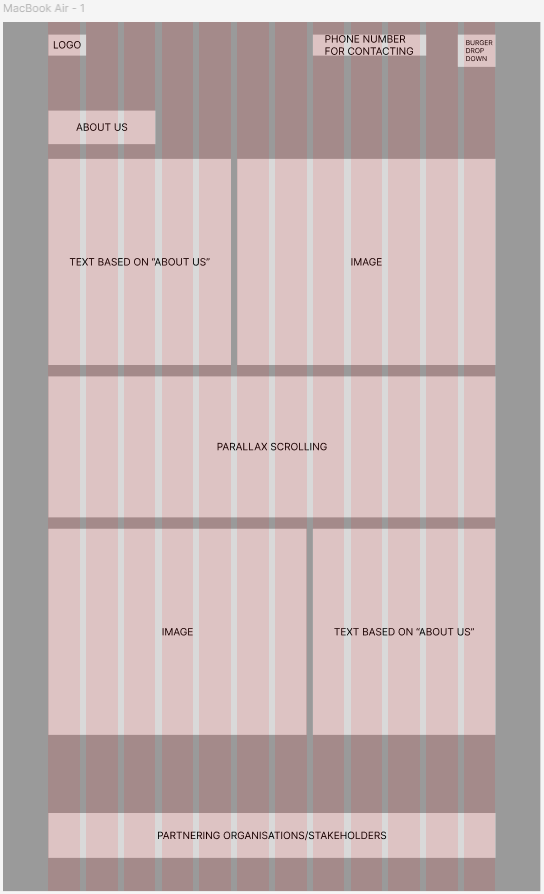 Finally the low fidelity website for the home page has been constructed with images and corresponding text, with the addition of parallax scrolling to give a little motion to the website. An easily accessible contact phone number has been added to the top right of the screen so users can get into contact easier. A burger drop down menu has been added to the top right for the main navigation of the website to avoid a cluttered screen. Lastly a bar at the bottom of the page will be set to show the organisations that the Participatory Collective is working together to bring attention to all groups like a family.