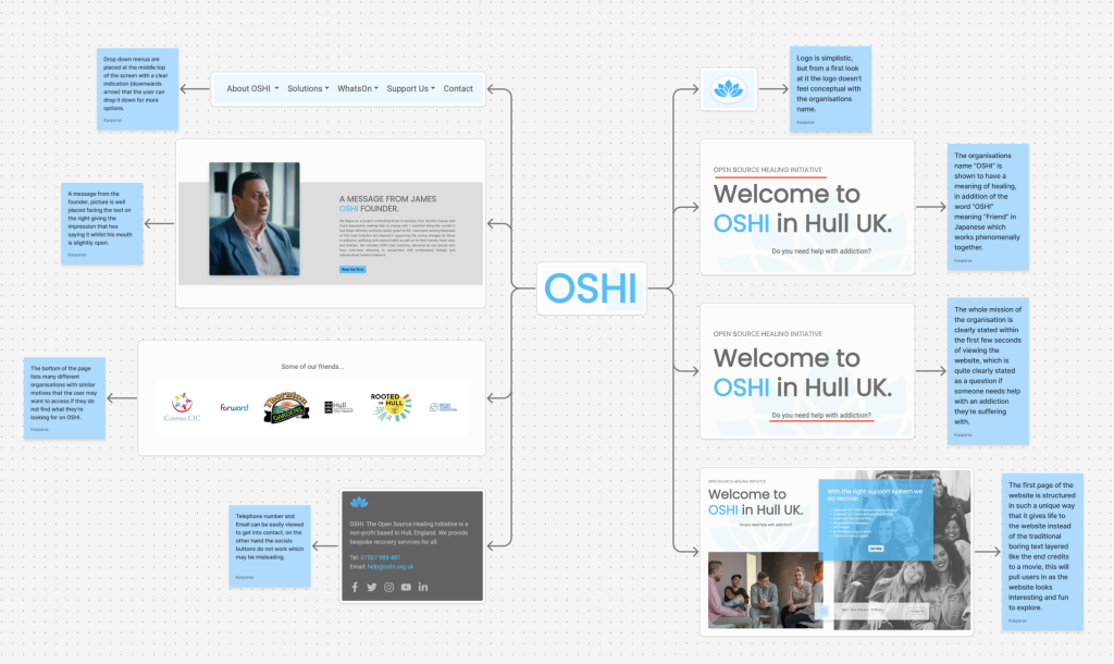 First of all one positive is that the website is very well structured with images placed in perfect positions, this can be seen with the founder of OSHI delivering a message to the users of the website with the image of his upper torso/face facing the text on the right with his mouth slightly open, this gives of the impression that the founder is directly stating that message. Another positive is that the word “OSHI” in Japanese means “Friend” which suits very well with the mission of the organisation, which is to lend a helping hand like a friend and help someone heal throughout their specified addiction. Lastly another positive is that the name “OSHI” is an abbreviation of “Open Source Healing Initiative” which yet again explains their mission straight from the name of the organisation.