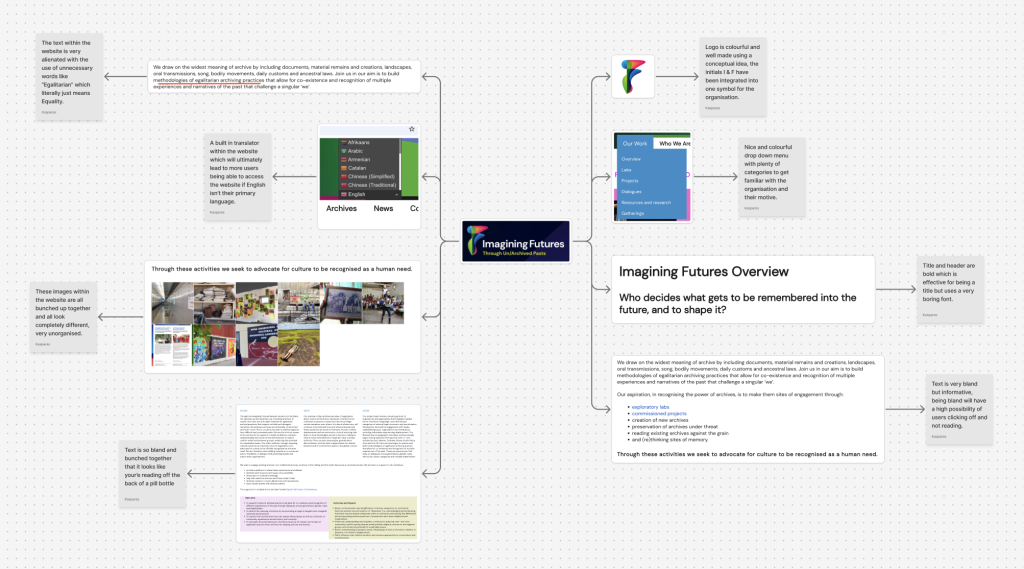 One positive of the website is that it has an in built translator, this is a huge benefit to the organisation, this is because user can access the website and read what its all about without having to understand the English language. Another positive is the logo, the logo is formed from the initials of Imagining Futures which is “I” and “F” into one character, this ultimately makes the logo very memorable and retains user retention.
