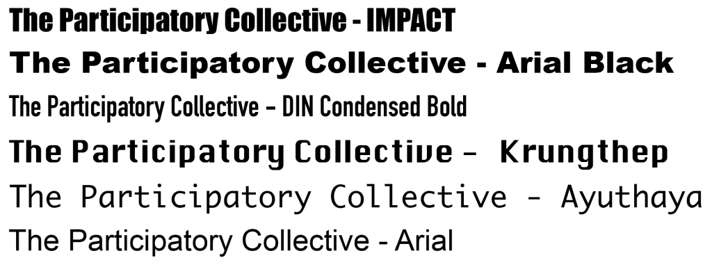 The first addition to the Participatory Collective is the logo. This logo has been constructed very specifically using a singular stroke of a pen, this was done to have a professional look, in addition the logo symbolises that the Participatory Collective is all linked together with a singular line making the impression that all the communities/organisations are linked together with the Participatory Collective as a family.