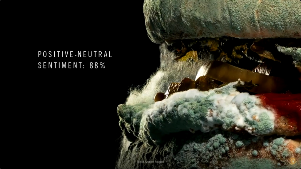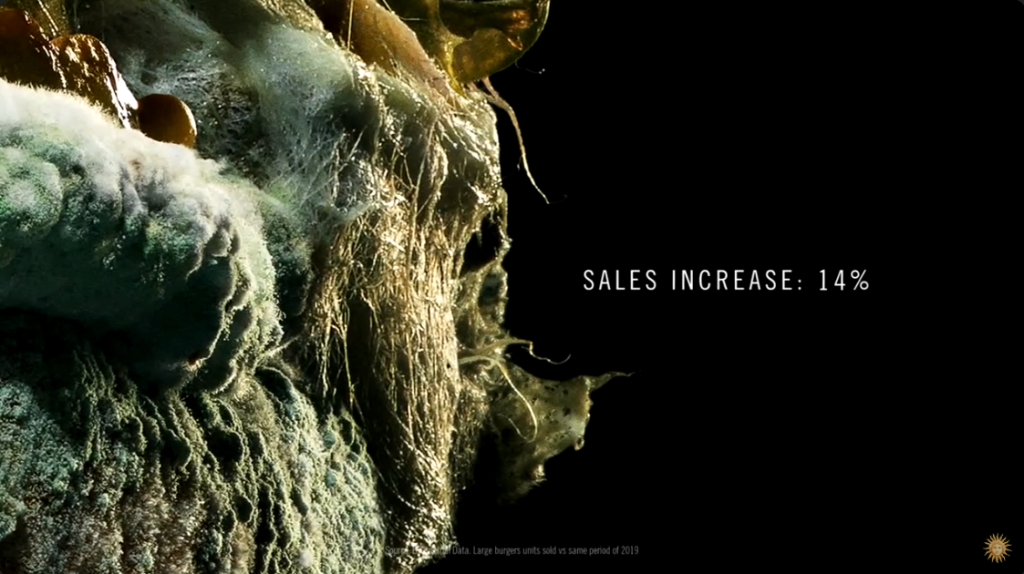 A certain aspect that I would personally change about the campaign would be to transport the tagline “The beauty of no artificial preservatives” to the start of the video, this is because, the viewers can understand why the burger then proceeds to decompose, whereas the tagline at the end would only confuse viewers as they may wonder why a burger is being decomposed without context.